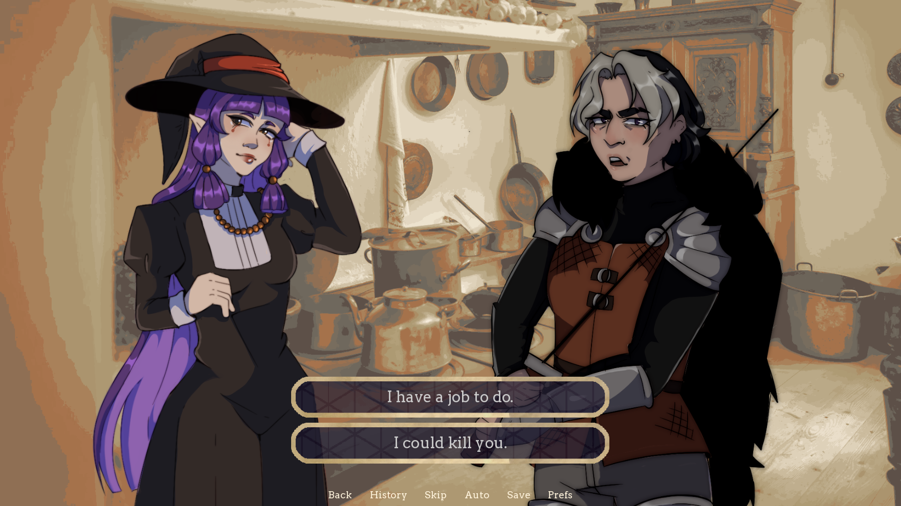 After being banished from the Kingdom for illegal necromancy, the Witch will do anything to keep her hiding place a secret. When a Knight from the King's Guard finds her, the Witch does what she must. However, the corpse proves itself to be a lucrative opportunity for both of them...